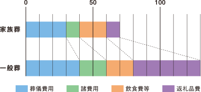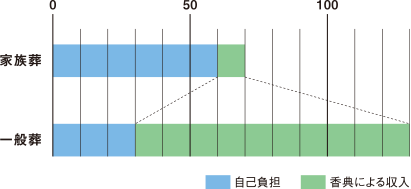 家族葬は参列者への接待などにかかる費用が軽減できる一方で、香典収入が少ないので、葬儀費用のほとんどが自己負担となります。