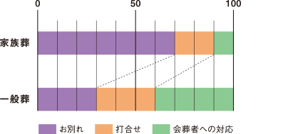 参列者への気遣いなどで忙しく、精神的にゆっくりお別れができない一般葬と違い、家族葬は、ゆっくりとお別れの時間を過ごすことができます。